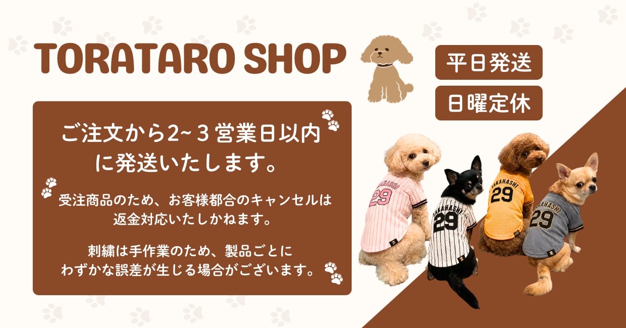 当店は、阪神タイガースを愛してやまない愛犬家のための、刺繍ユニフォーム専門ショップです!